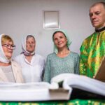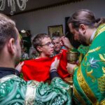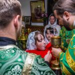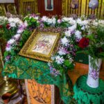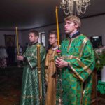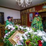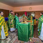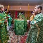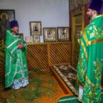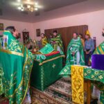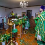 После Литургии священнослужители совершили славление празднику. Затем к прихожанам и паломникам обратился благочинный округа. Отец Павел рассказал о действиях Святого Духа в Церкви и призвал народ к участию в строительстве нового храма в селе.